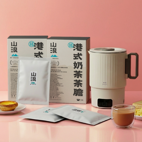 現凡於山浪網店或BRUNO香港門市購買以上套裝,均可享加購優惠,可以 $18/包 加購價追加山浪港式奶茶拼配茶膽試飲包。